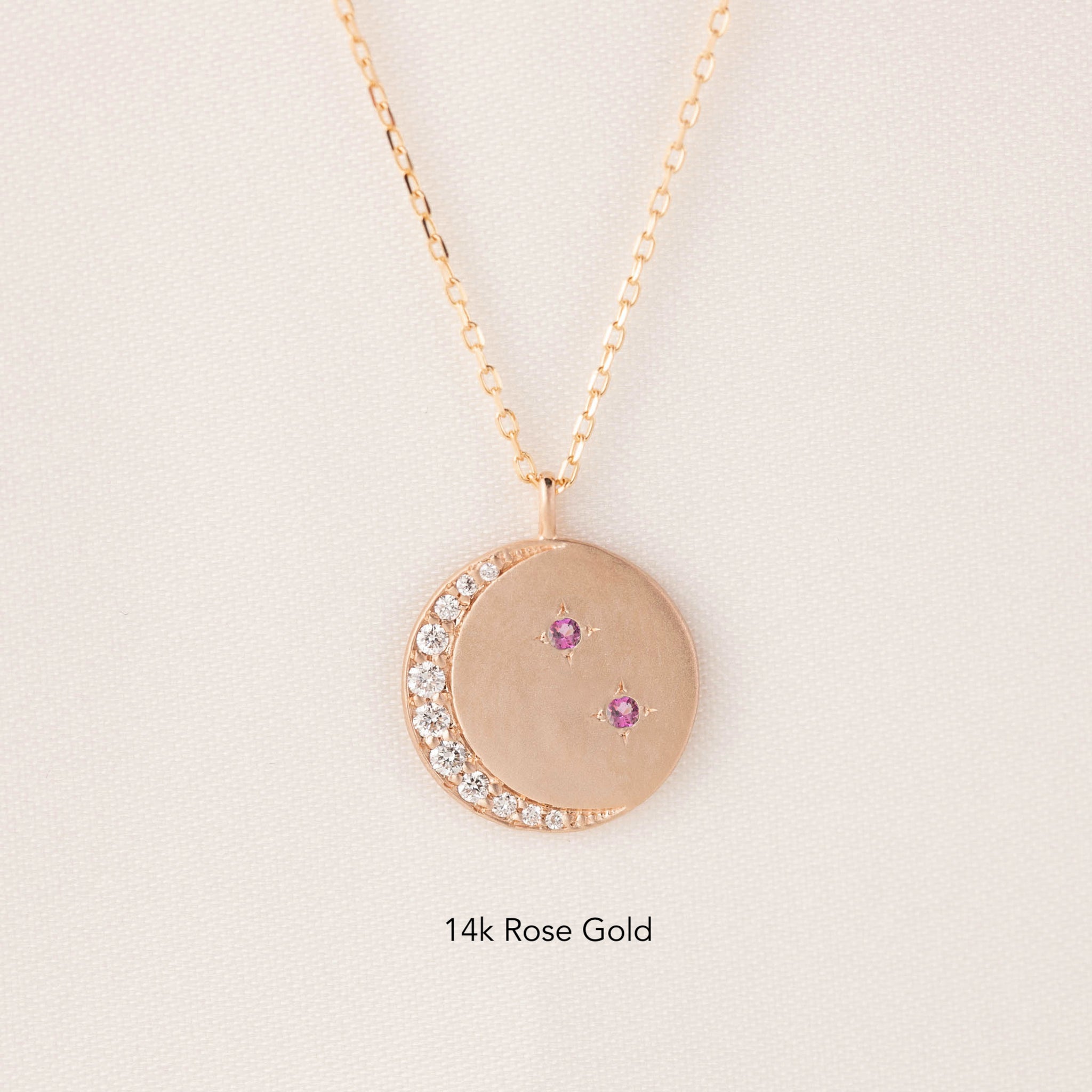 14k solid gold crescent charm, with the option to add a 14k solid gold chain and spring clasp to create a necklace.