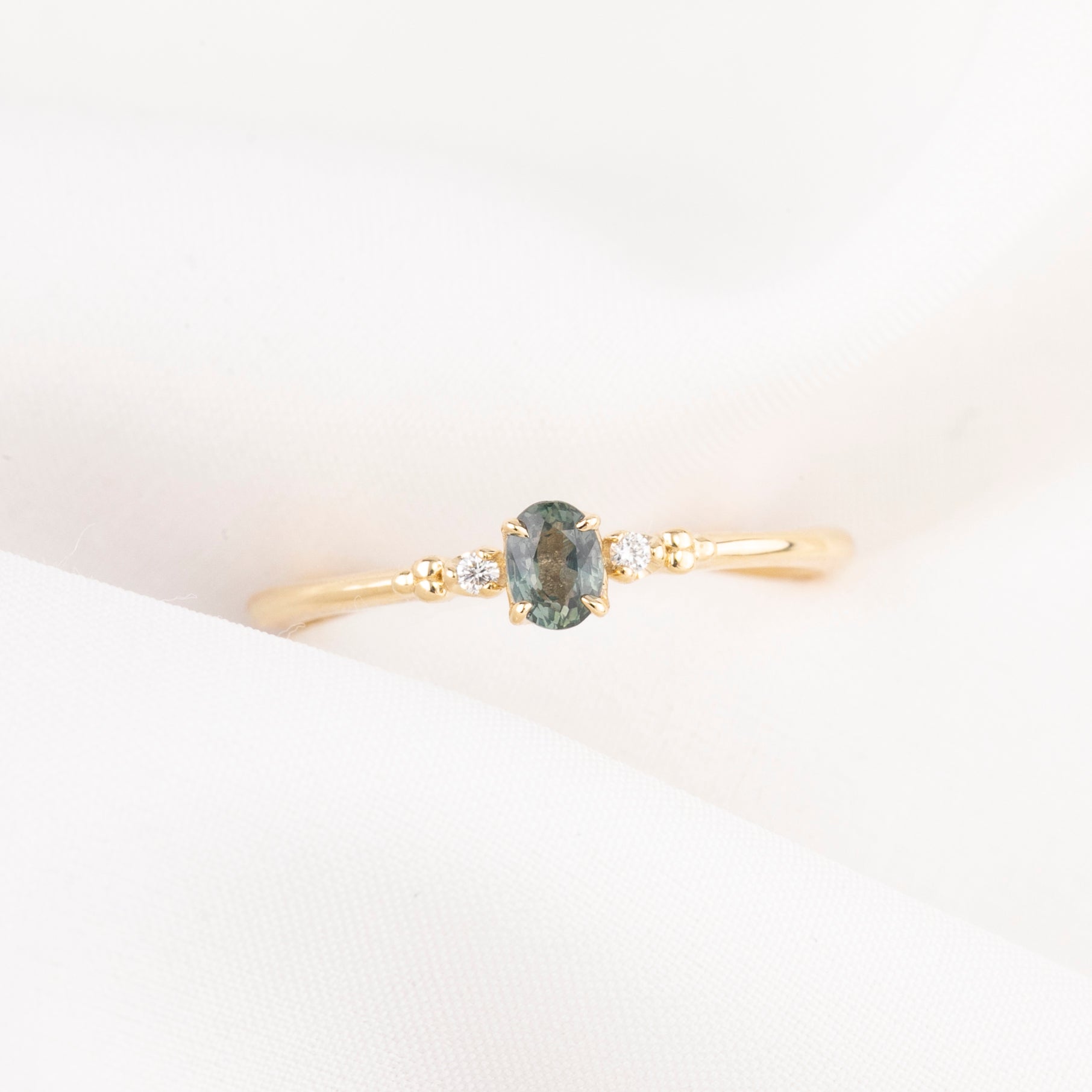 Estel Ring, 0.20ct Blue Green Unheated Sapphire